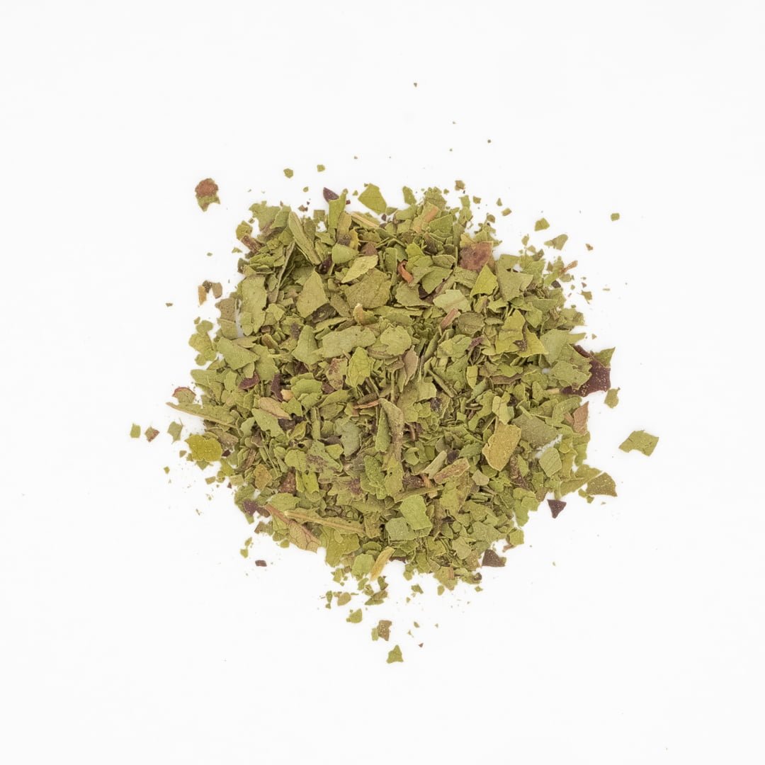 It has a light passion fruit berry flavour with notes of balsamic vinegar and is used to bring out the sweetness and berry notes is food and drinks. Its particularly good for use in desserts like ice cream, pavlova and whilst also rubbed on lighter meats like pork, fish and chicken. For tea making, adding a tiny pinch of leaves to any tea brew, will add levels of flavour and complexity to simple green, black and herbal teas.